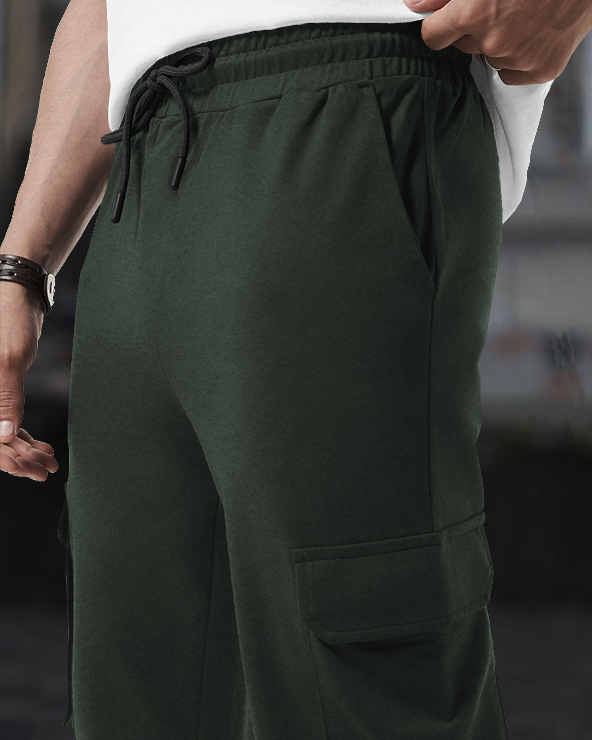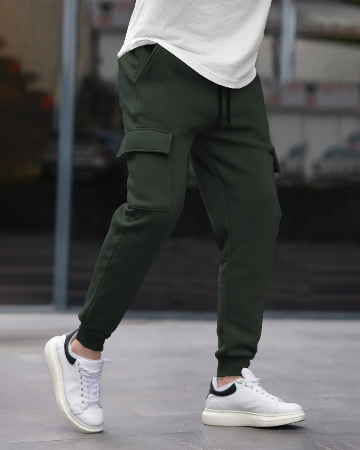 Mens Multi Pockets Plain Olive Green Cargo Jogger