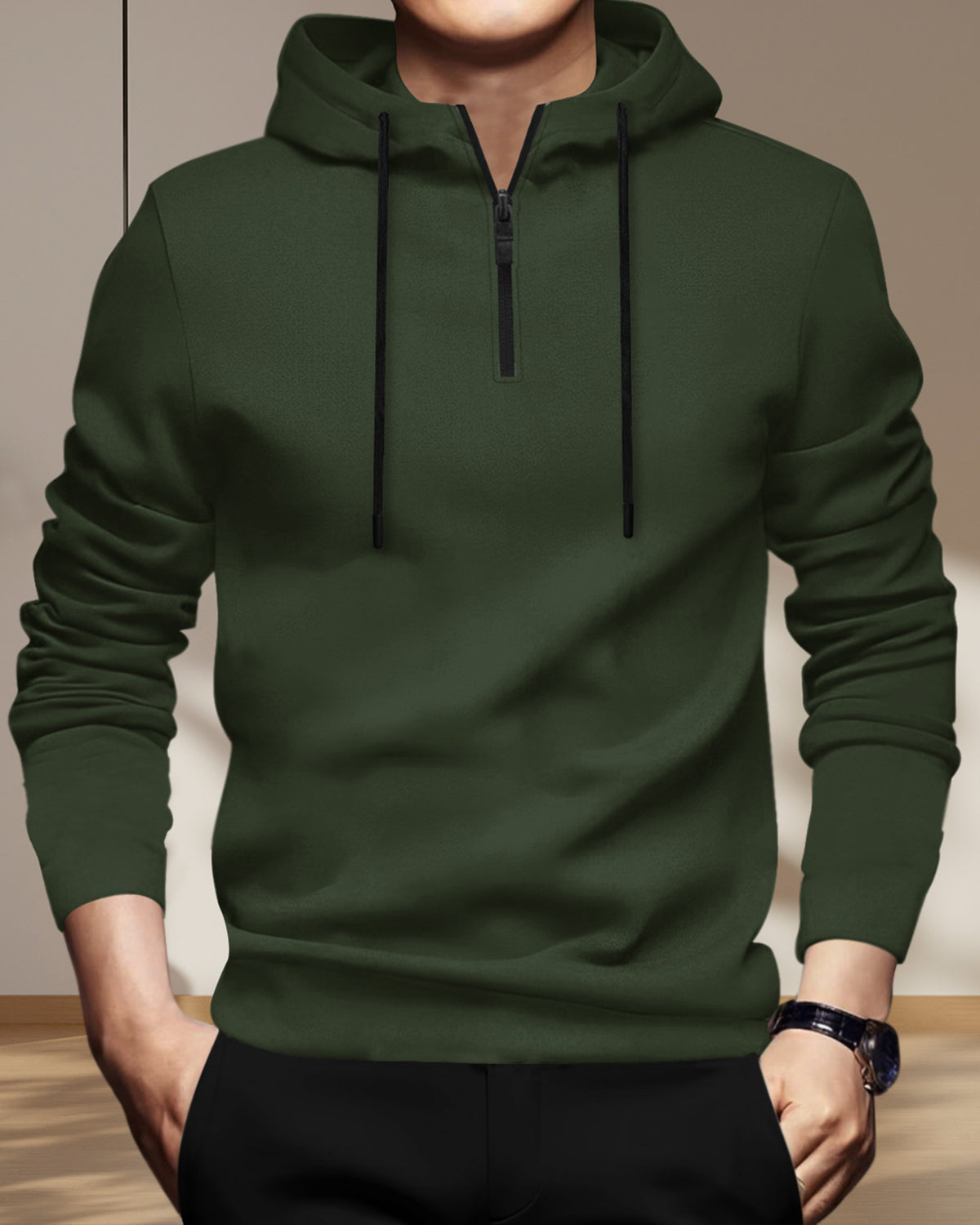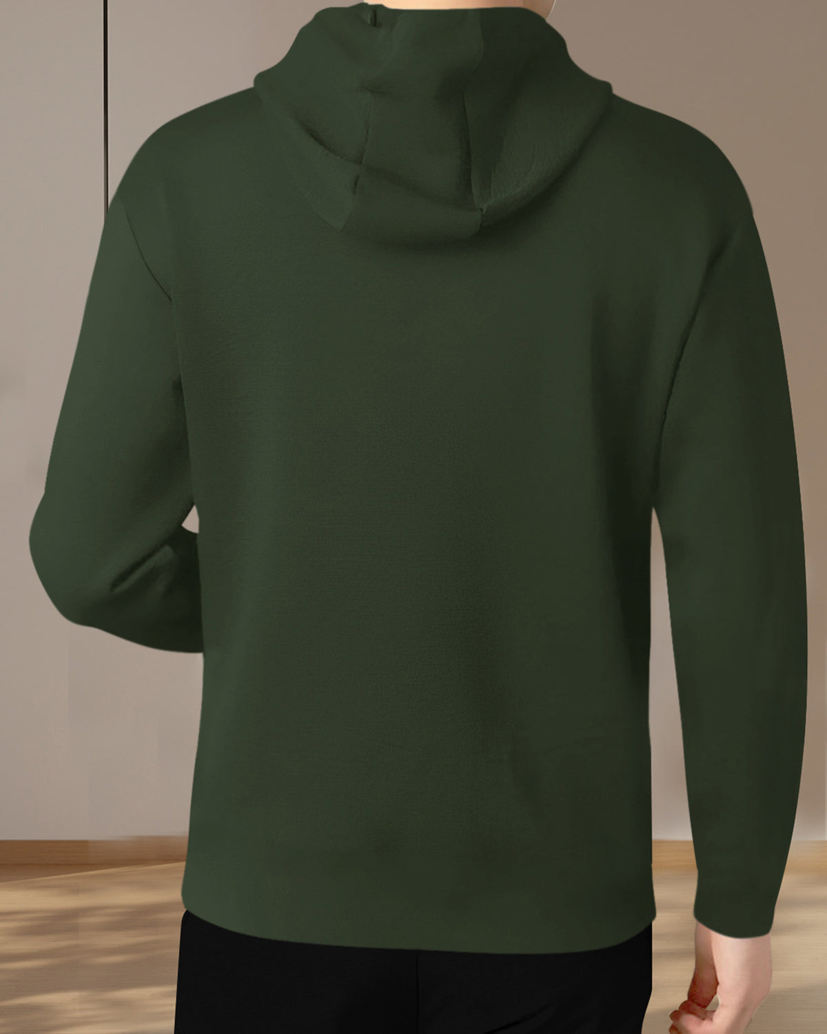 Mens Black Full Sleeve Plain Hooded T-shirt