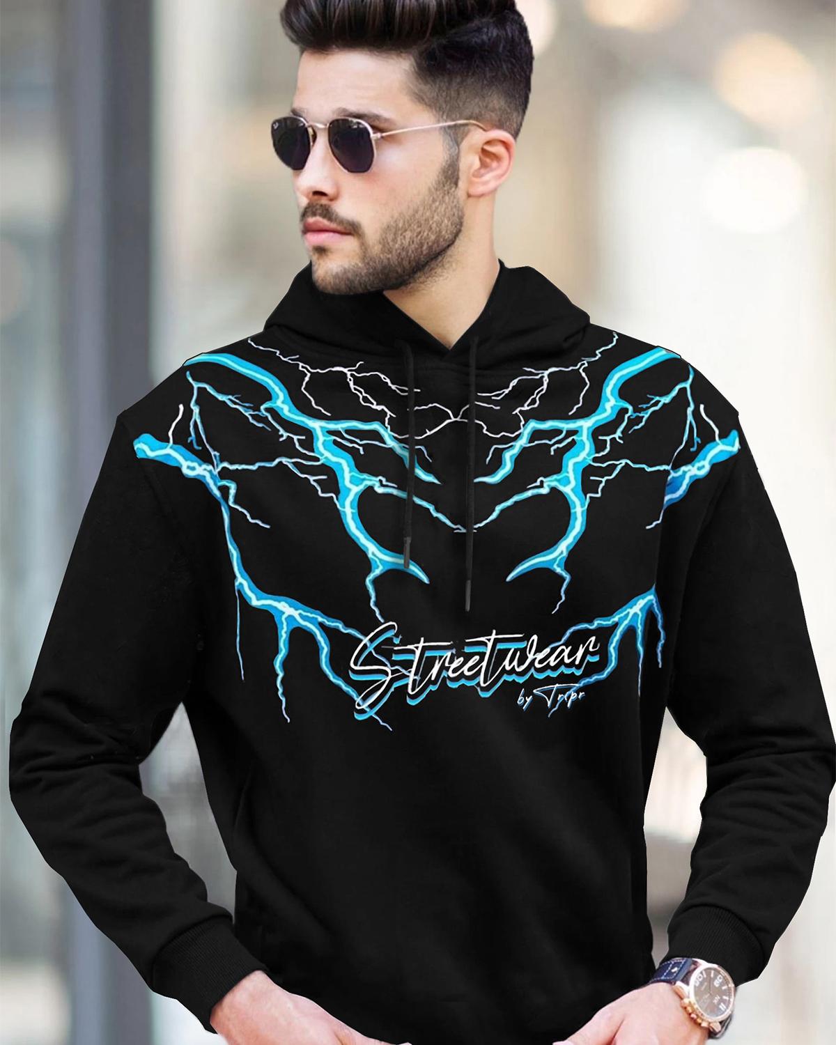 Men Over All Printed Hooded Full Sleeve Casual T-shirt Black