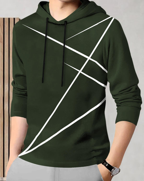Mens Full Sleeve Hooded Neck Dual Color Printed T-shirt / Black & Grey