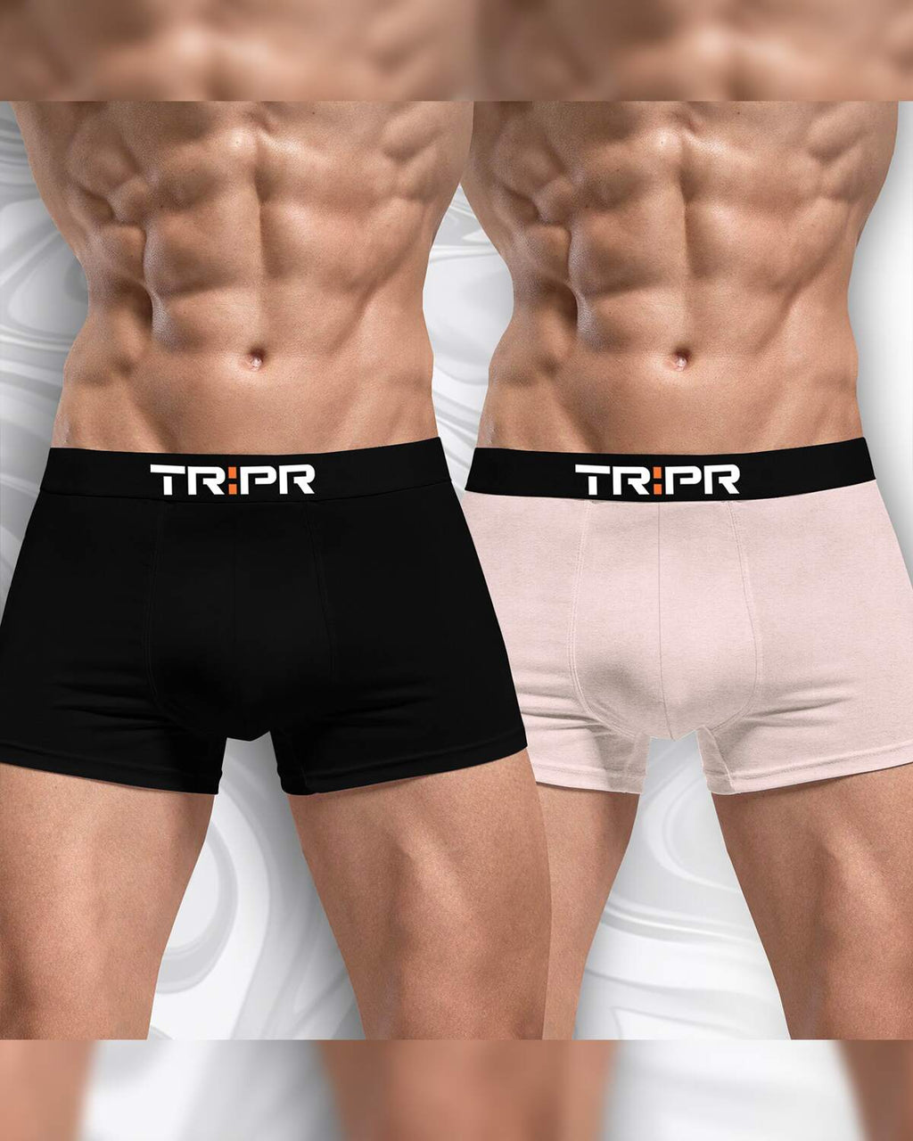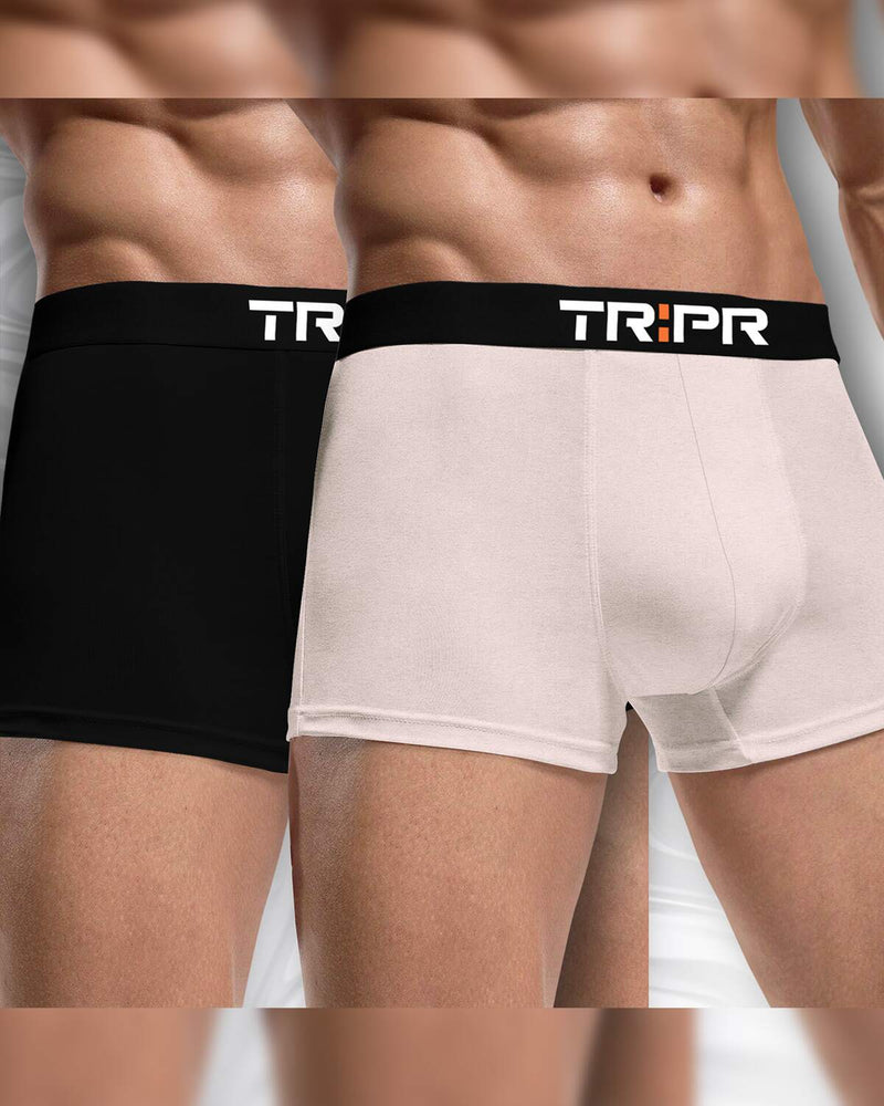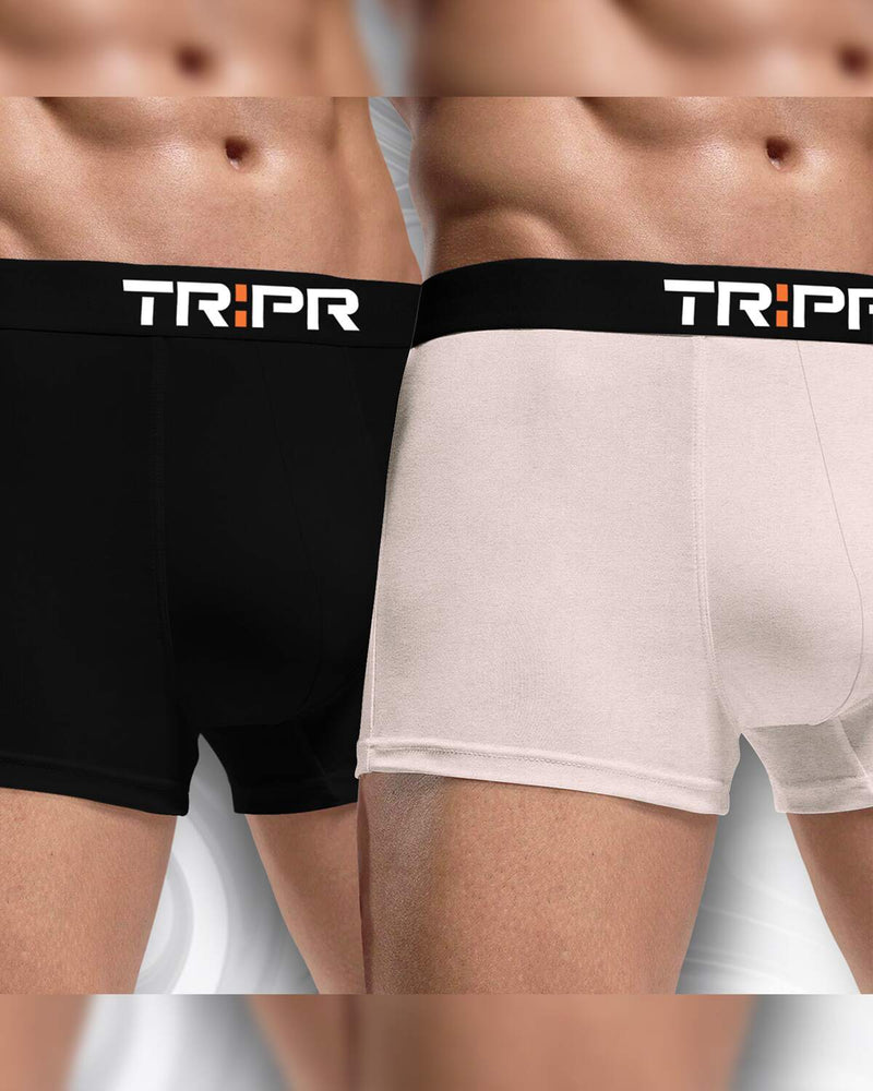 Combo Pack Of 2 Black & Beige Men Plain Trunks