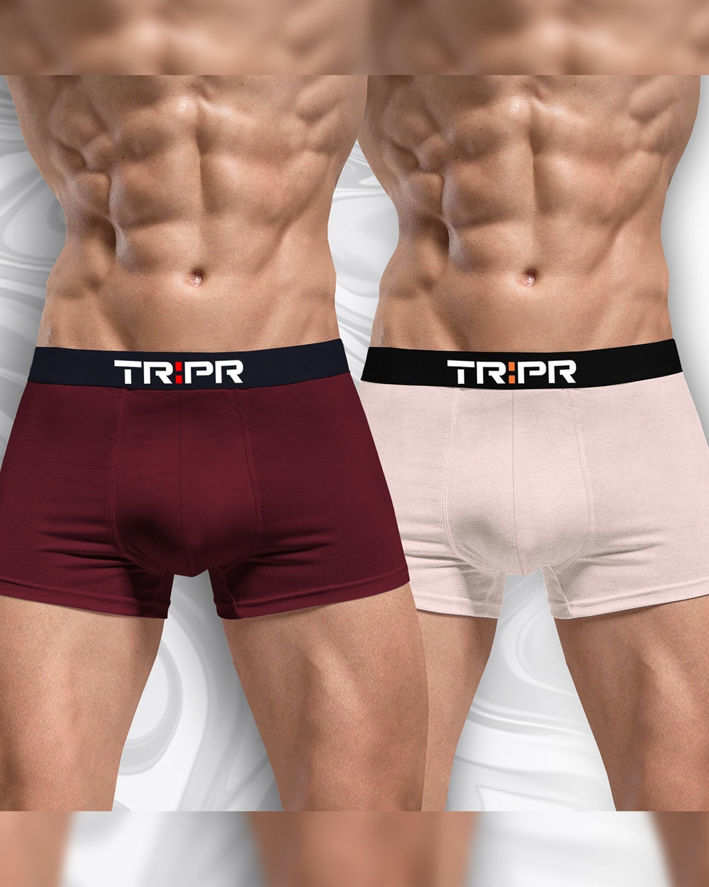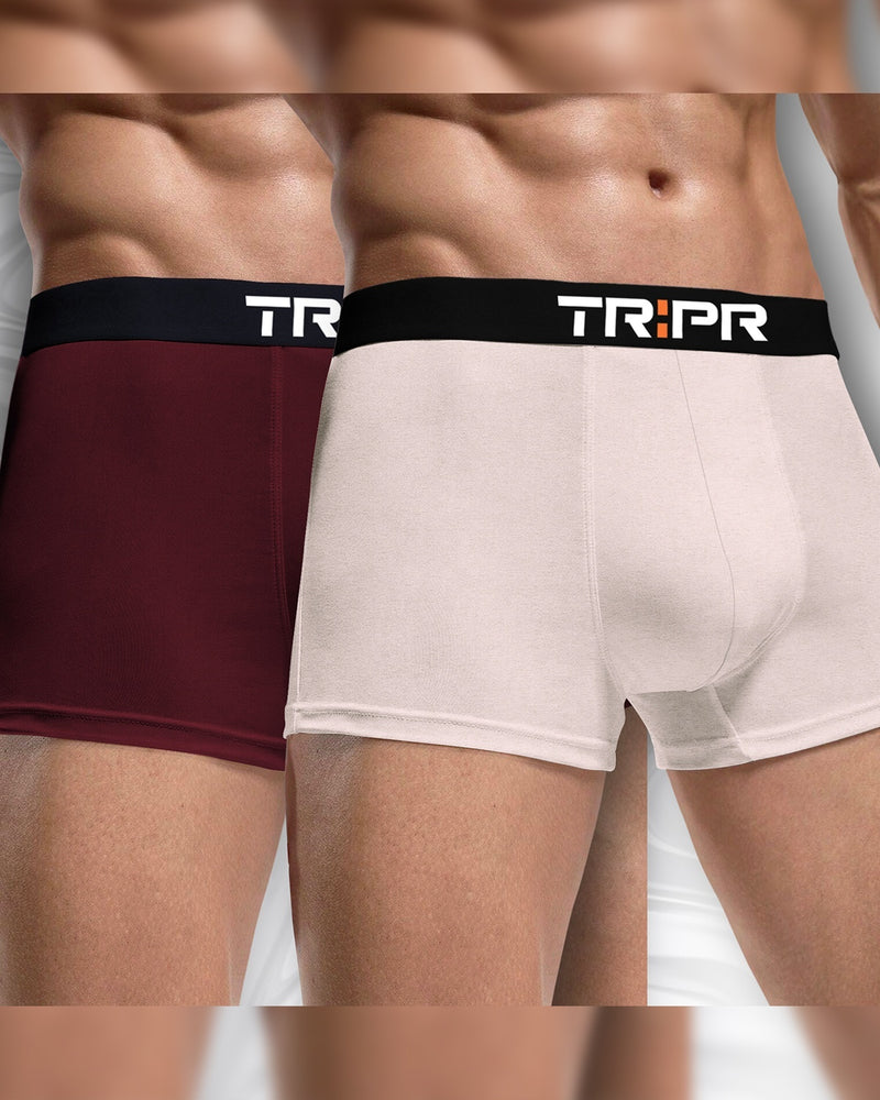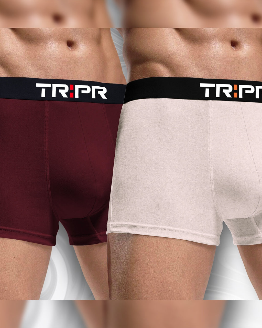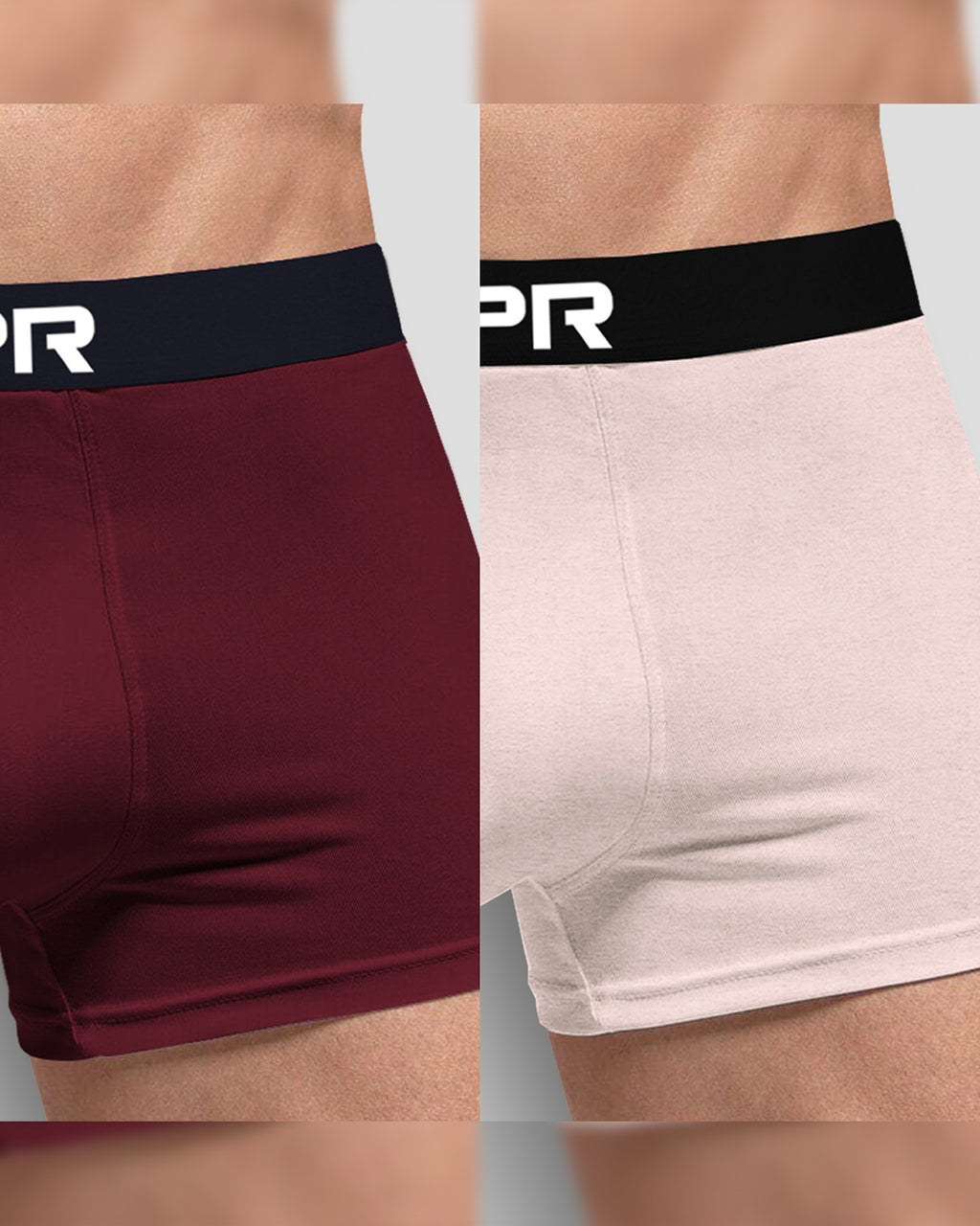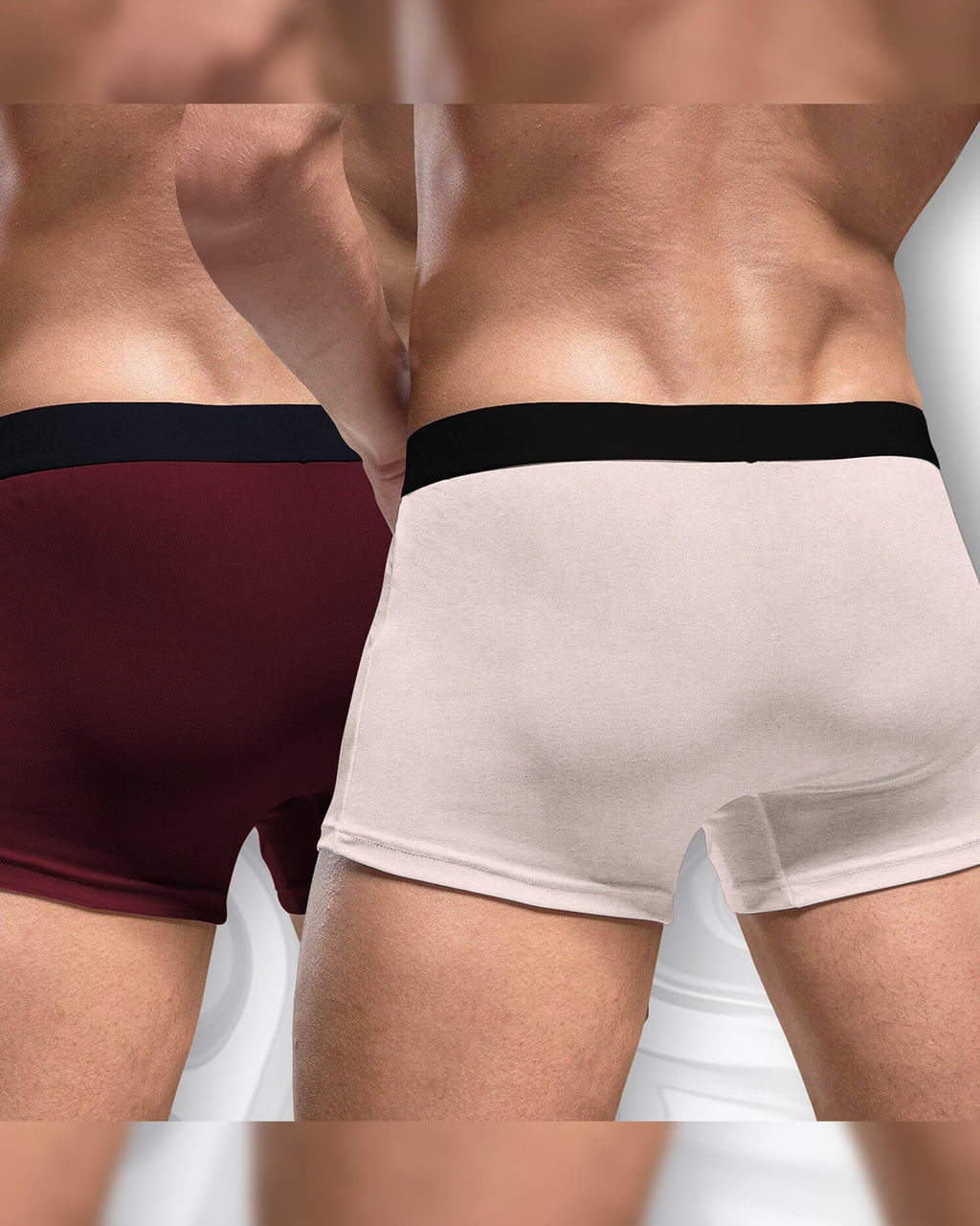 Combo Pack Of 2 Maroon & Beige Men Plain Trunks