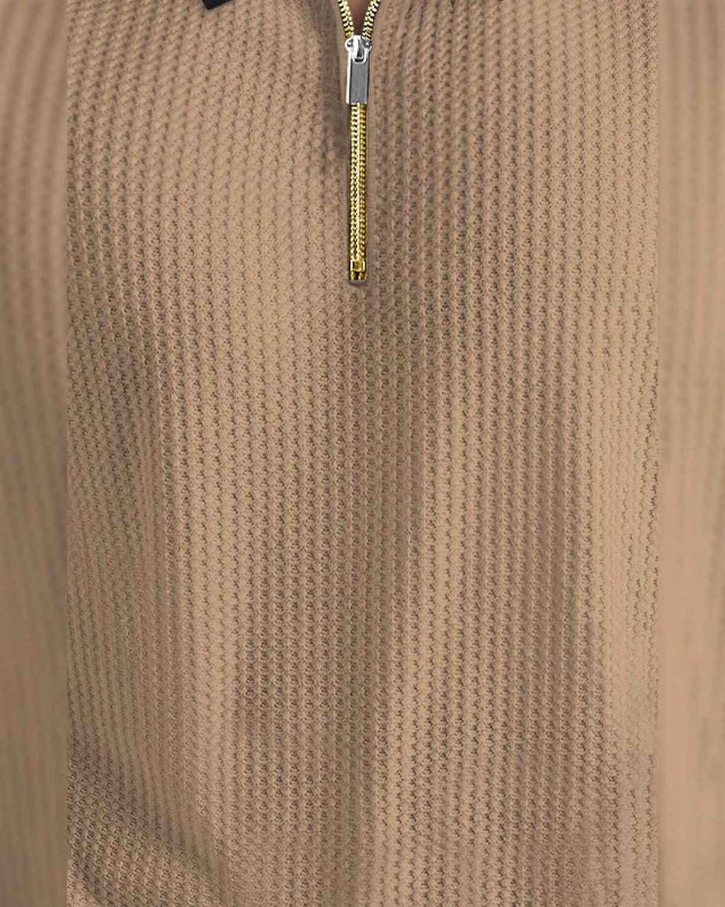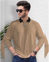 Men Full Sleeve Plain Beige & Black Waffle T-Shirt – TRIPR