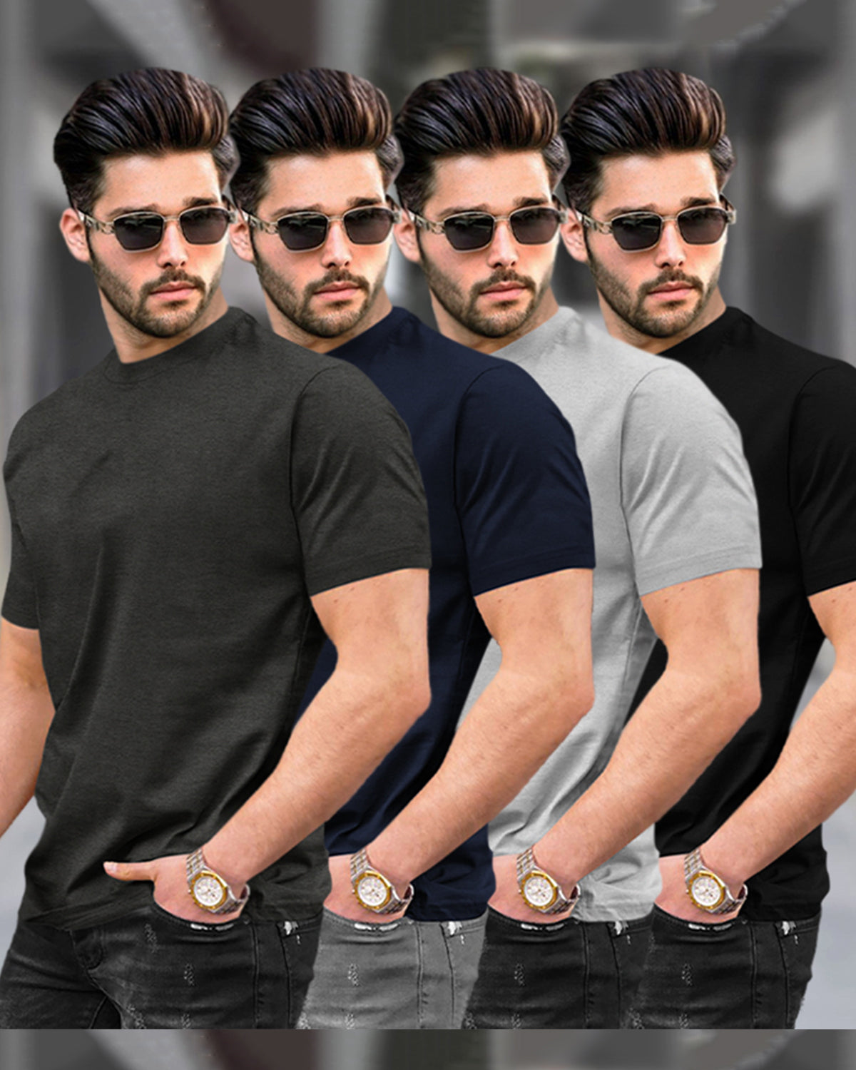 Mens Half Sleeve Plain Round Neck Multicolour T-shirts (Pack Of 4)