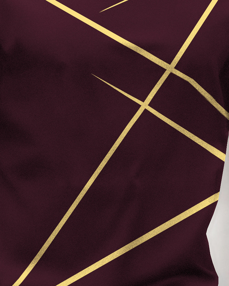 Round Neck Full Sleeve Zig Zag Printed Maroon T-shirt