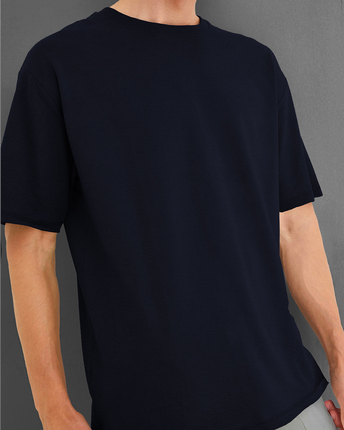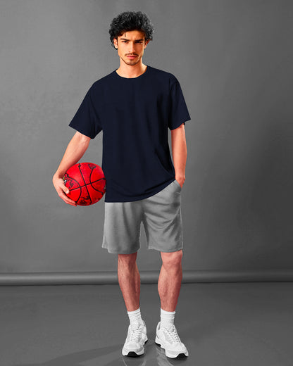 Navy Blue Mens Round Neck Solid Oversized T-shirt
