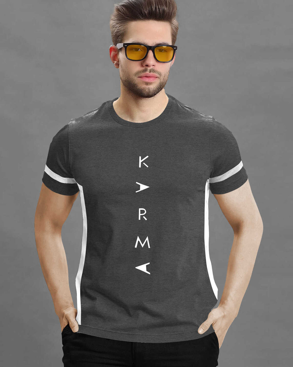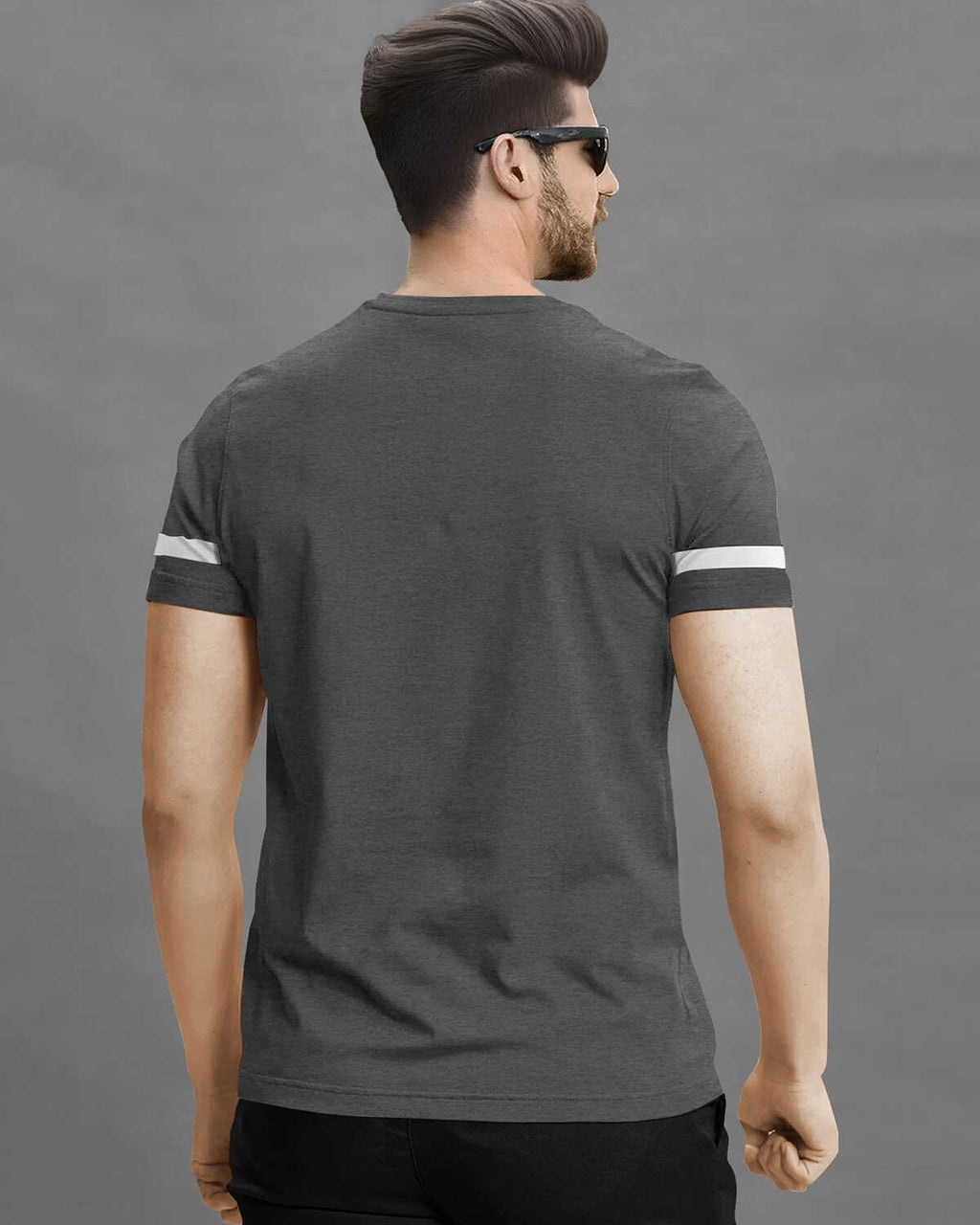Men Printed Half Sleeve Round Neck Cotton Blend Darkgrey T-Shirt