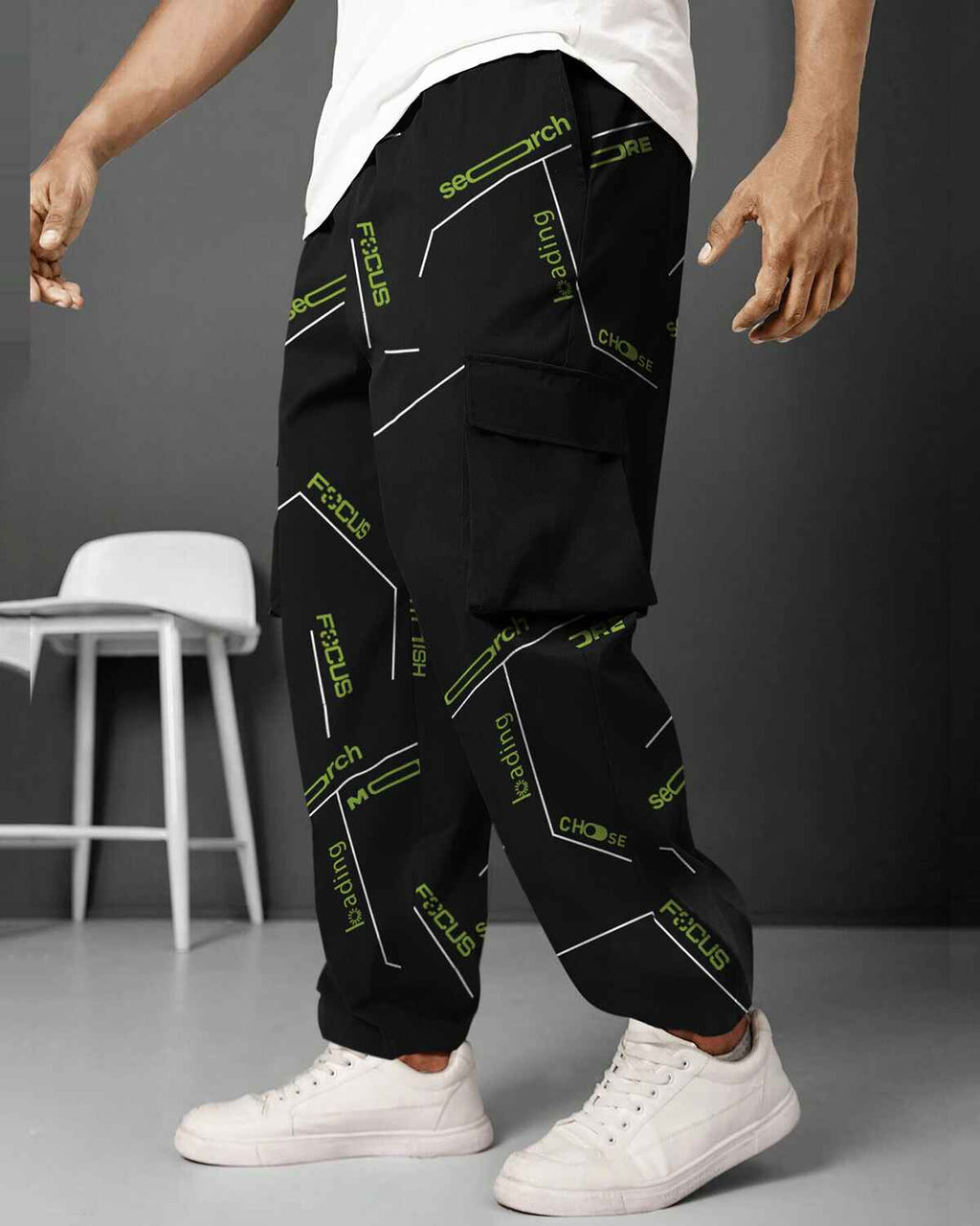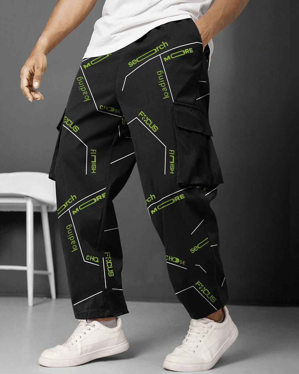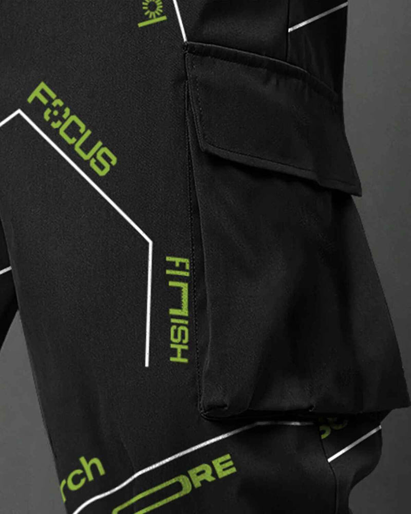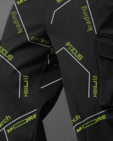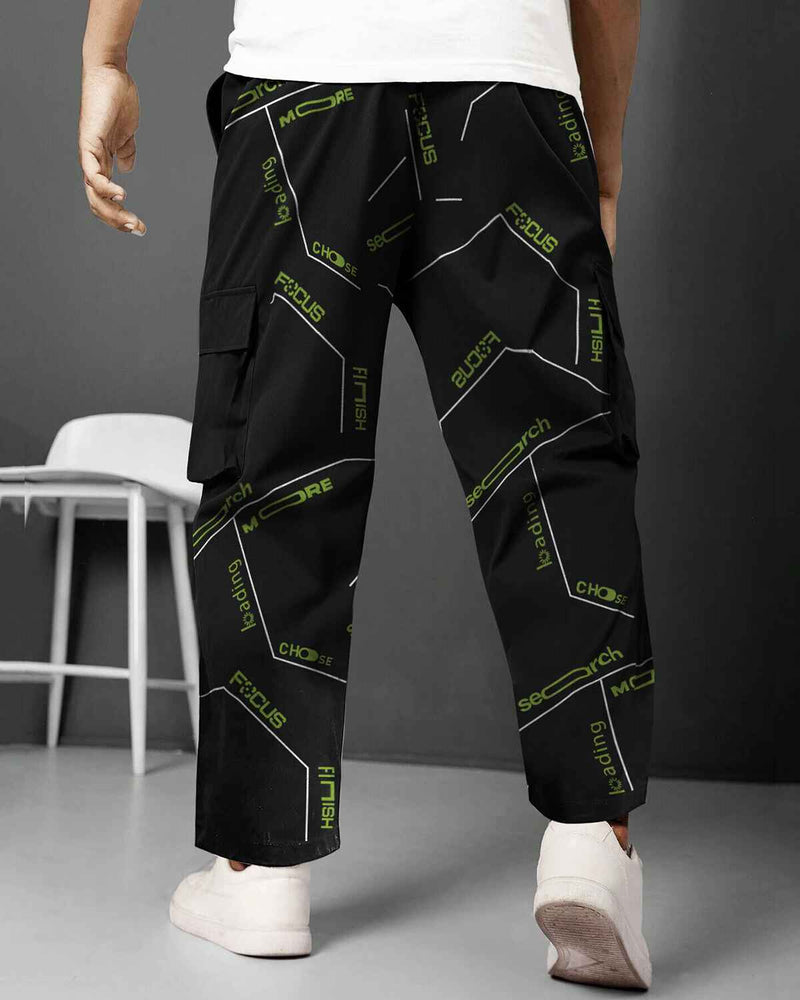 Mens Multi Pockets All Over Printed Baggy fit oversized Black Cargo Jogger