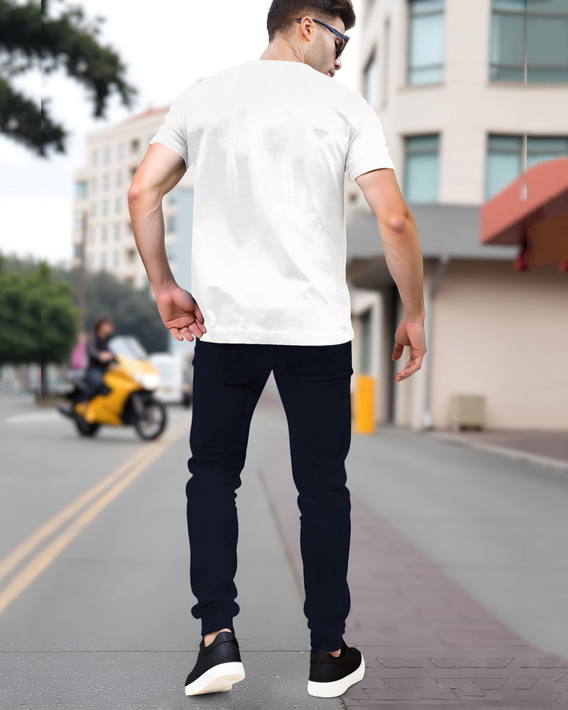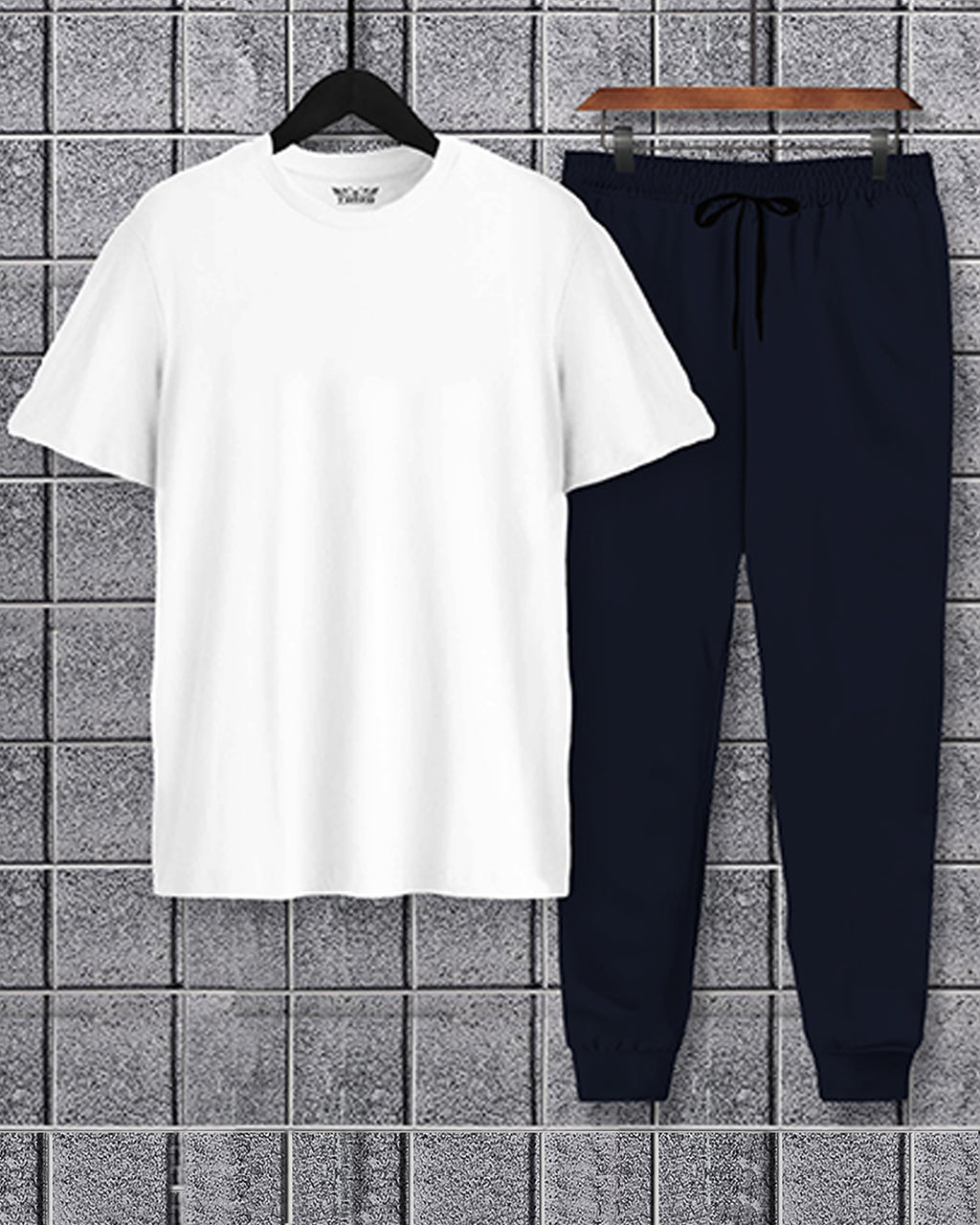 Half Sleeve White t-shirt with Navy Trackpant Mens Tracksuit