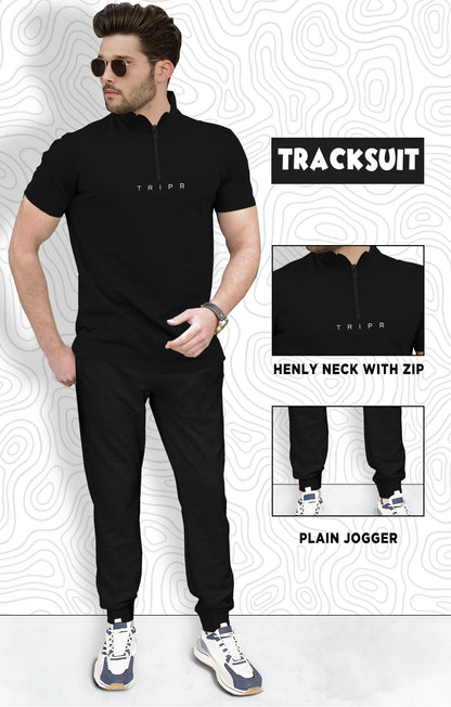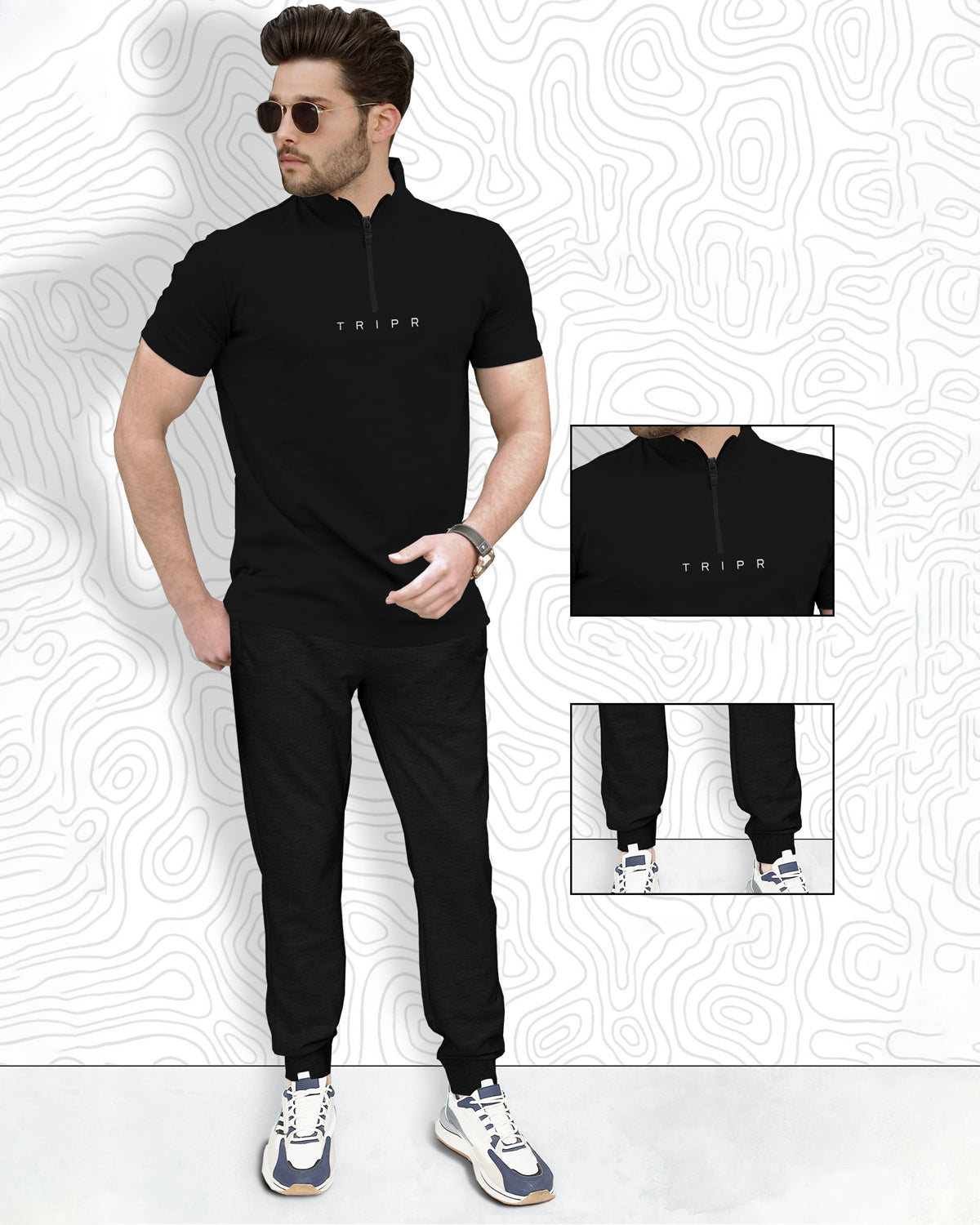 Tracksuit - High Neck BLACK T-shirt & Jogger Pant