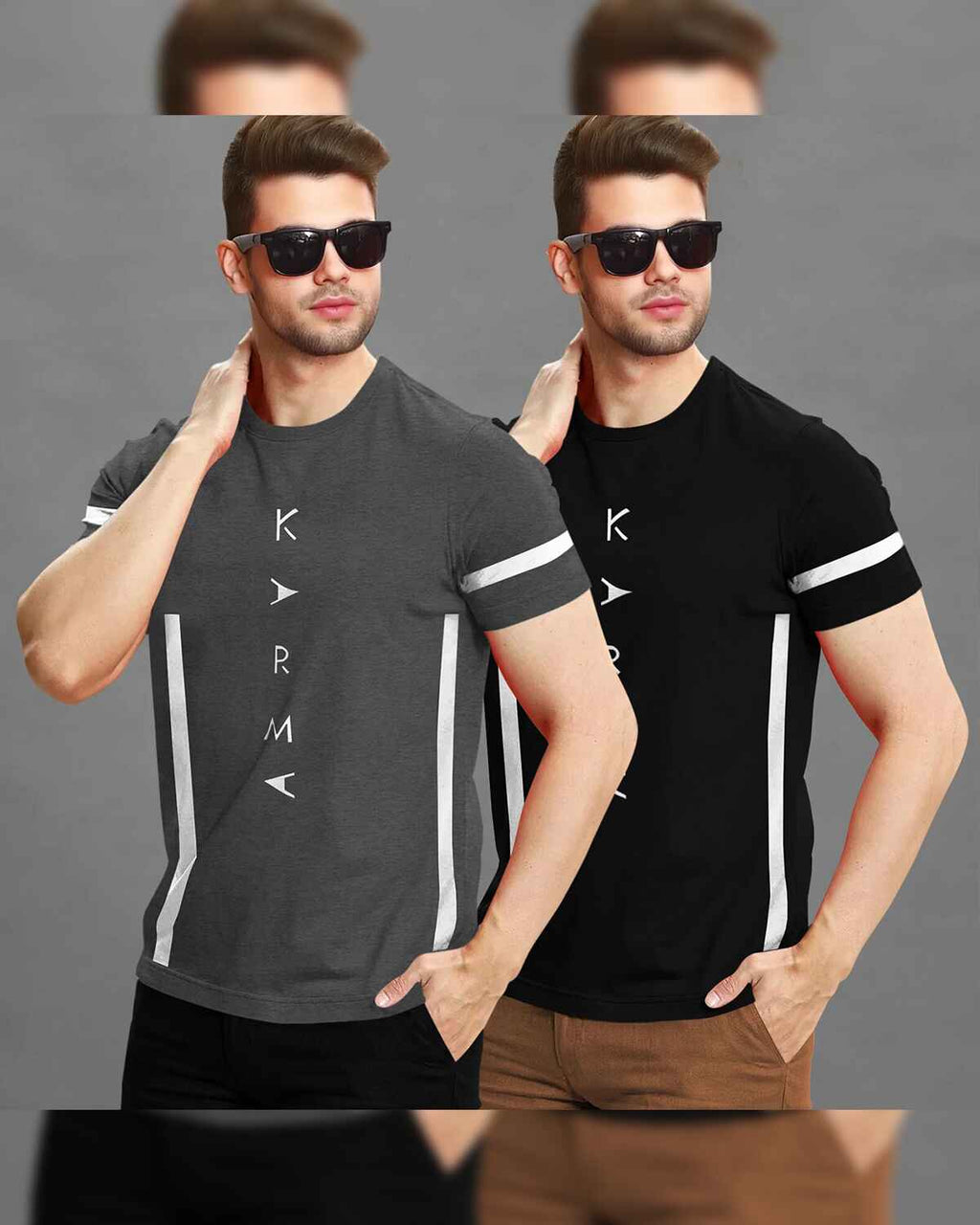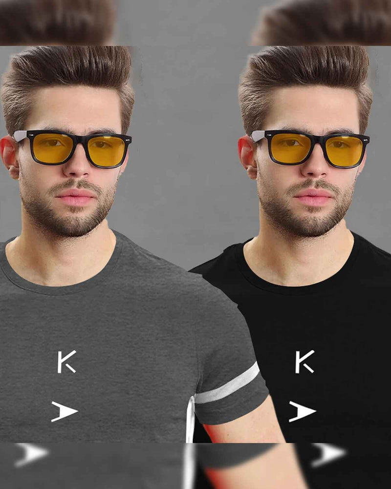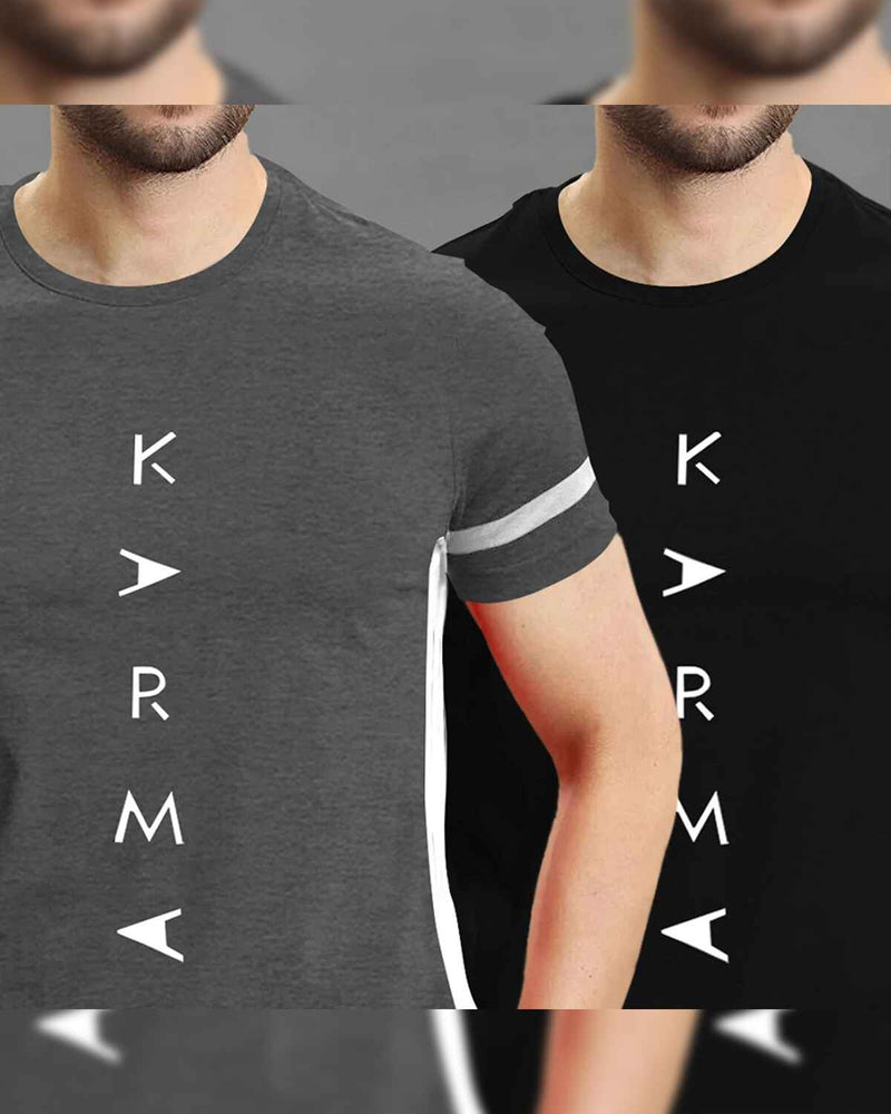 (Pack Of 2) Half Sleeve Darkgrey & Black Karma Printed T-shirts