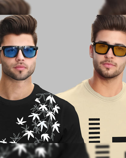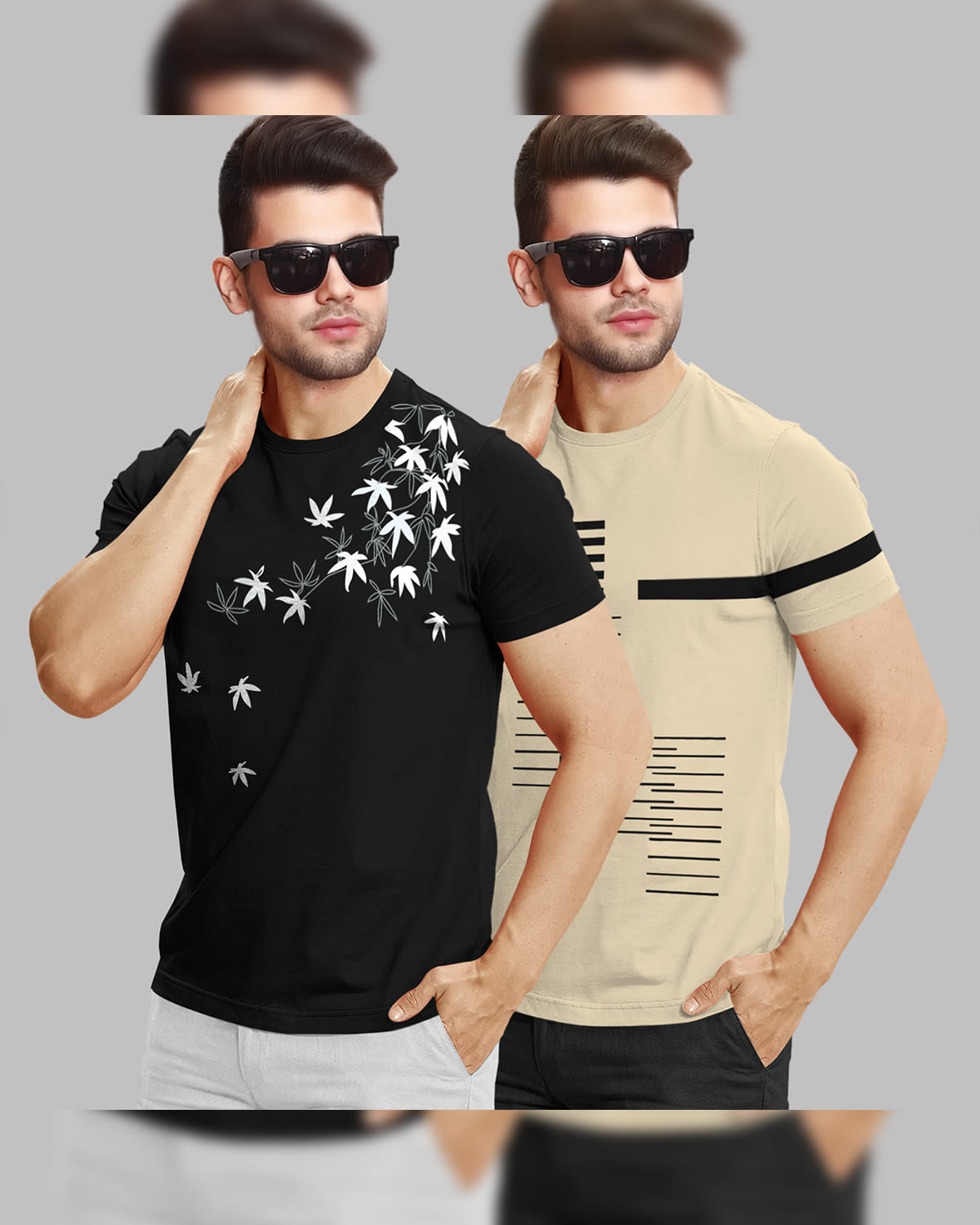 (Pack Of 2) Half Sleeve Black & Beige Printed T-shirts