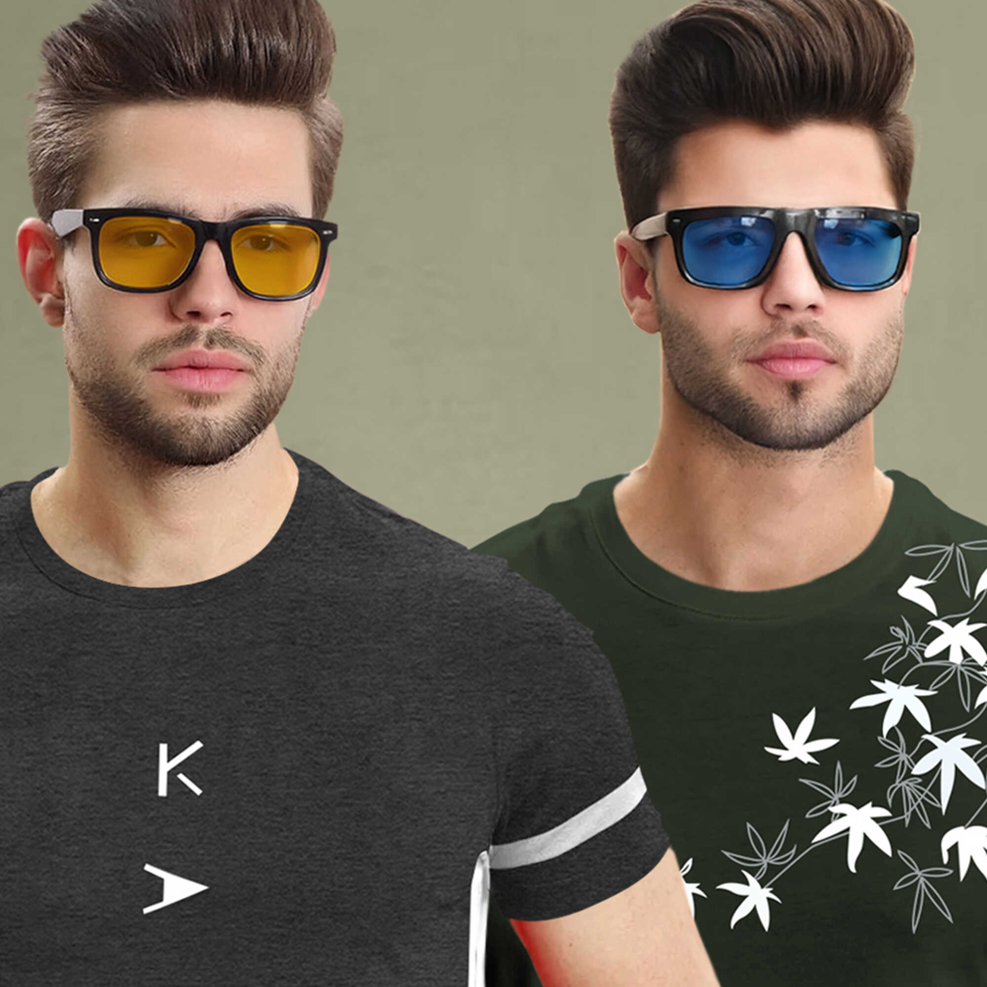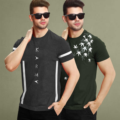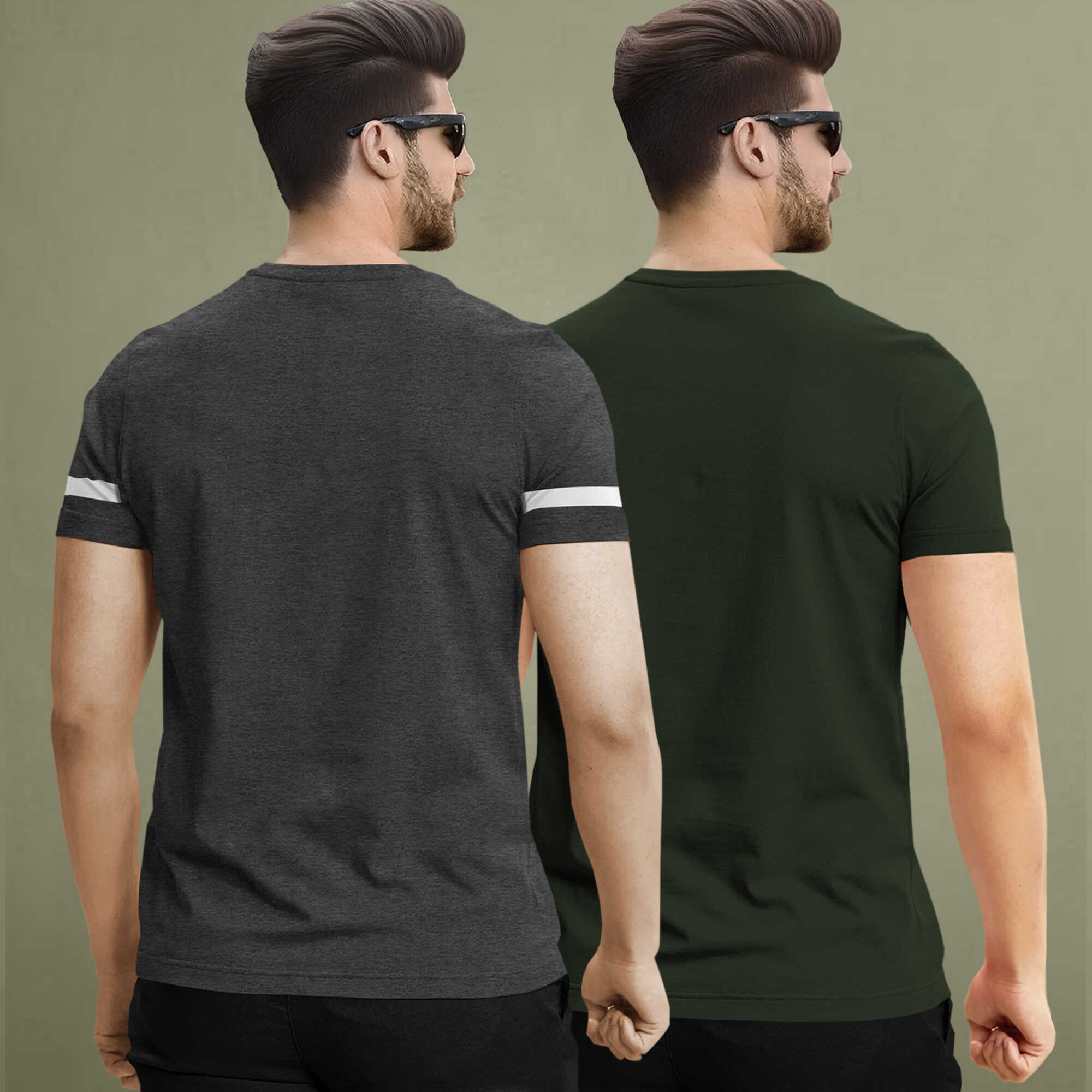 Combo pack Half Sleeve Printed T-shirts charcoal black and olive green
