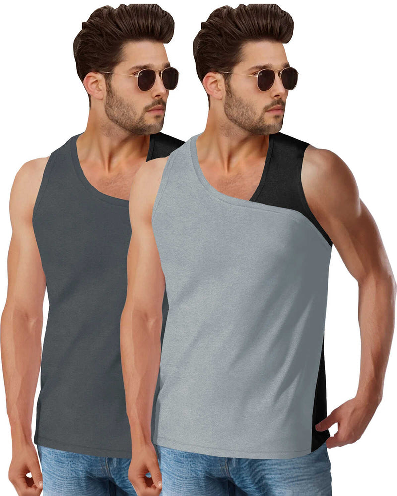 (Pack Of 2) Men Plain Combo Vest / Darkgrey & Grey – TRIPR