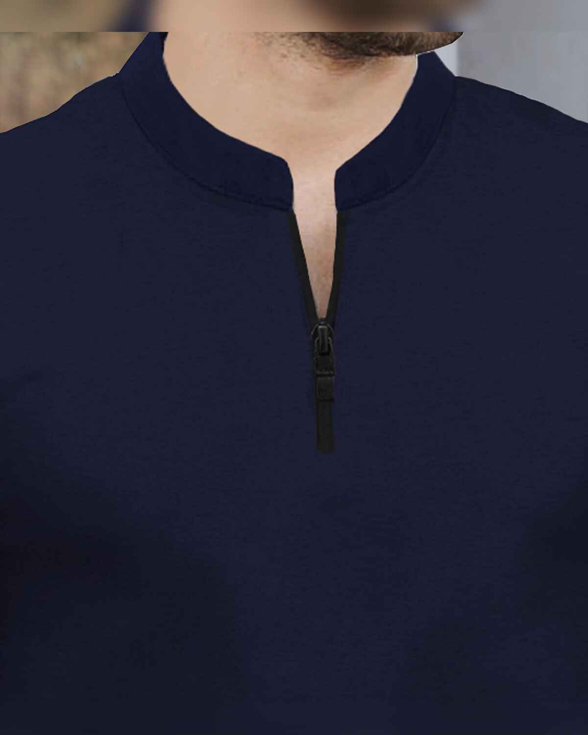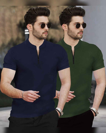 - Stylish Henley Neck with Zip Closure – This trendy half-sleeve T-shirt features a modern Henley neck design with a sleek zip closure for a contemporary look.