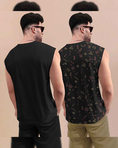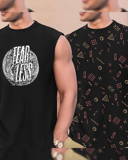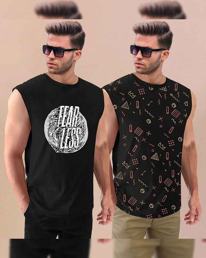 (Pack Of 2) Men Black Design Printed Round Neck Vests