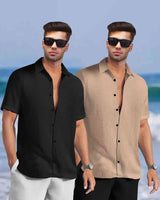 (Pack Of 2) Half Sleeve Plain Black & Beige Waffle Shirts