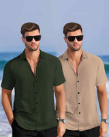 (Pack Of 2) Half Sleeve Plain Olive & Beige Waffle Shirts