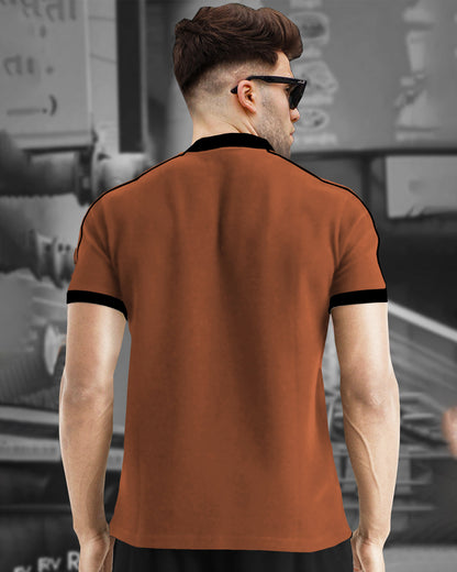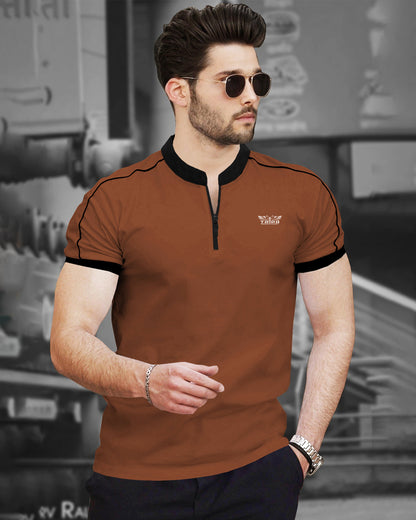 Men Mandarin Collar Contrast Color Zipper Half Sleeve T-shirts