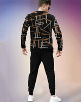 Tracksuit All Over Printed Full Sleeve T-shirt Black & Brown with Plain Black Trackpant