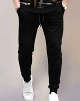 Stylish Plain Trackpants: Clean, minimal trackpants perfectly balance the vibrant t-shirt for a modern outfit.