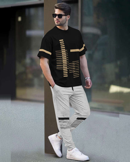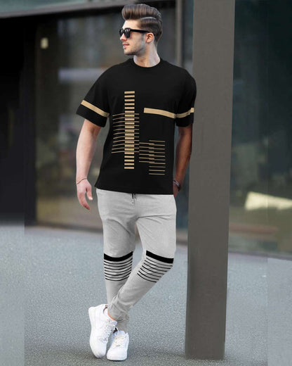 Track Suit Half Sleeve Black Printed T-shirt with Grey Printed Trackpant