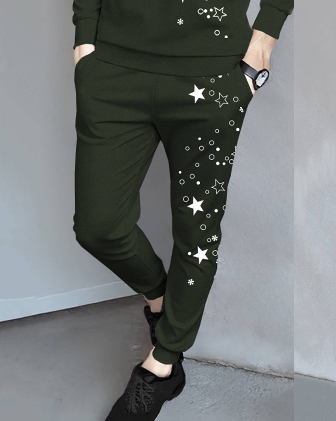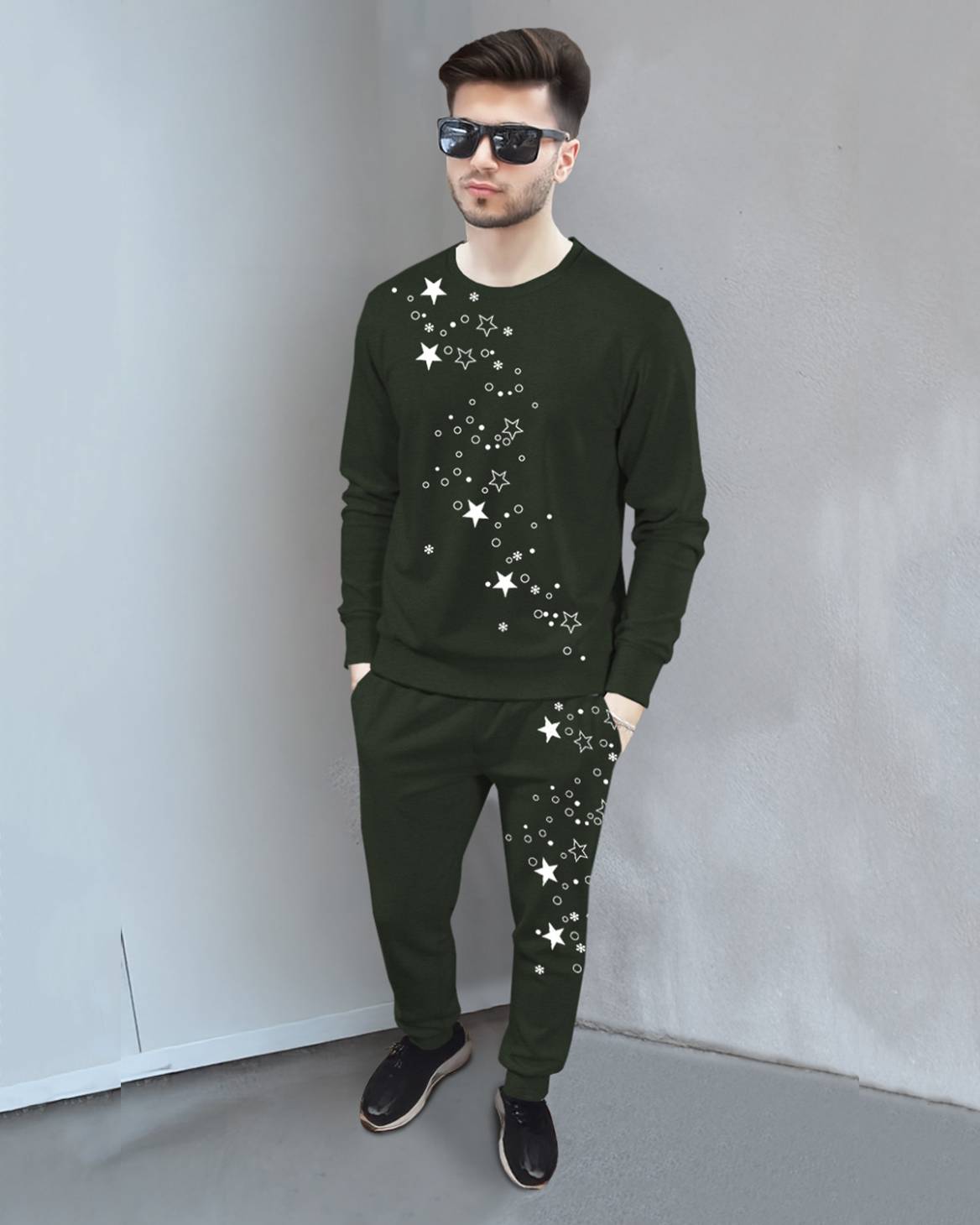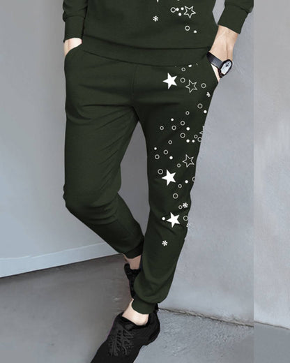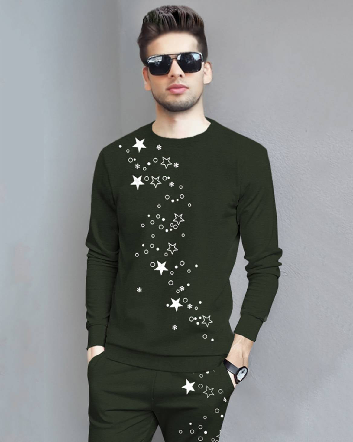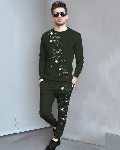 Tracksuit Full Sleeve Star Printed Olivegreen T-shirt with Olivegreen Printed Trackpant
