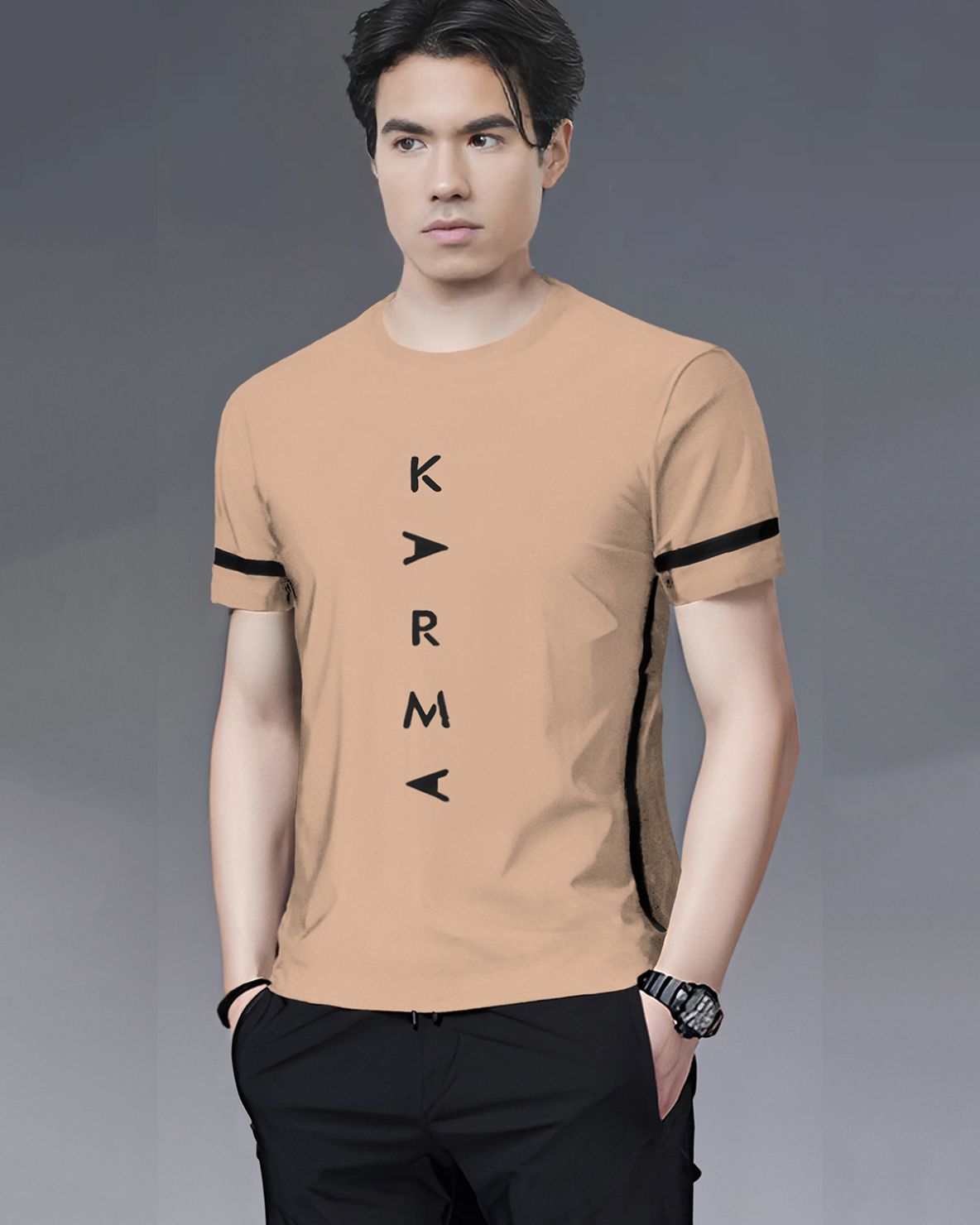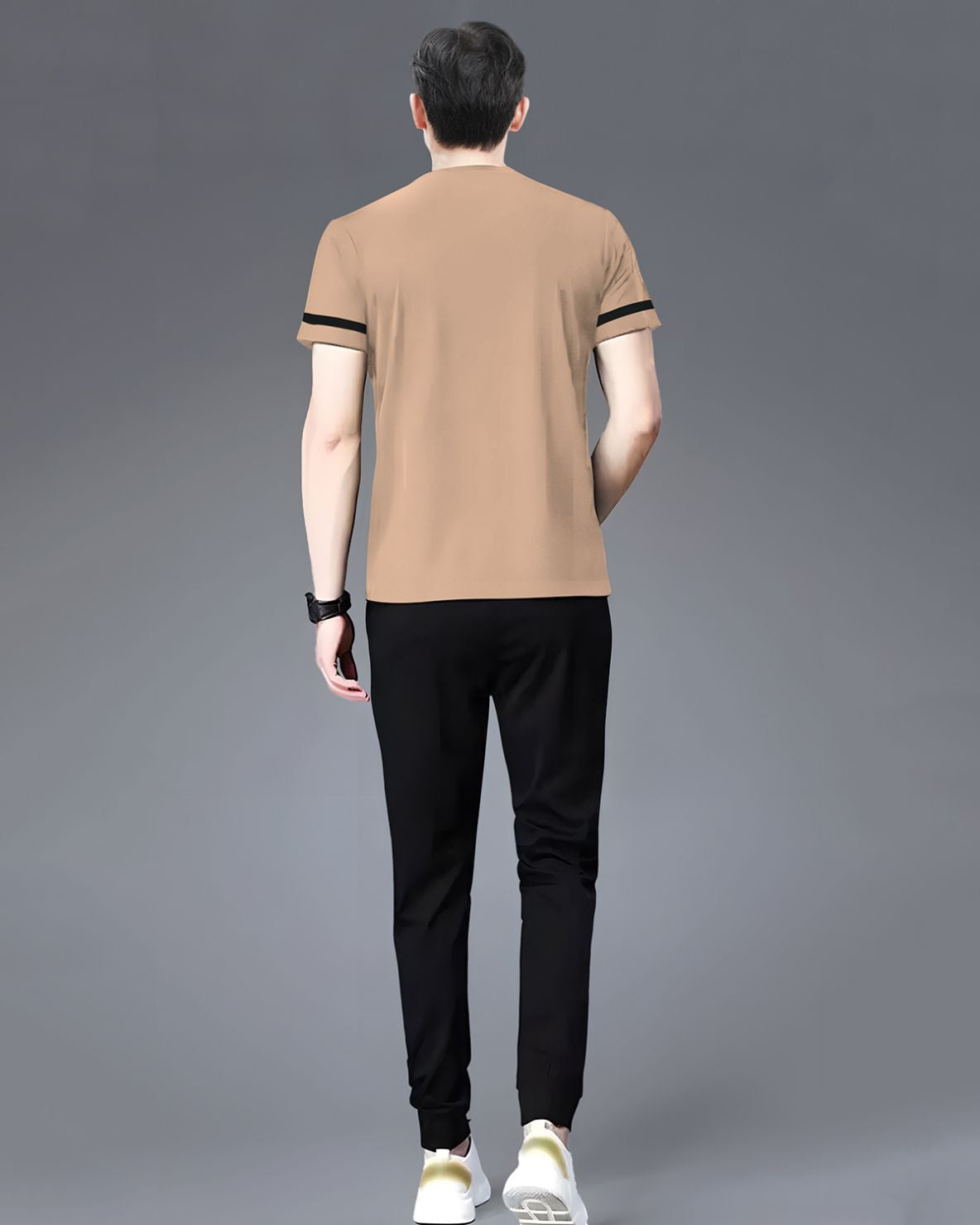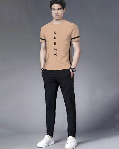 Track Suit Half Sleeve Beige Printed T-shirt with Black Plain Trackpant