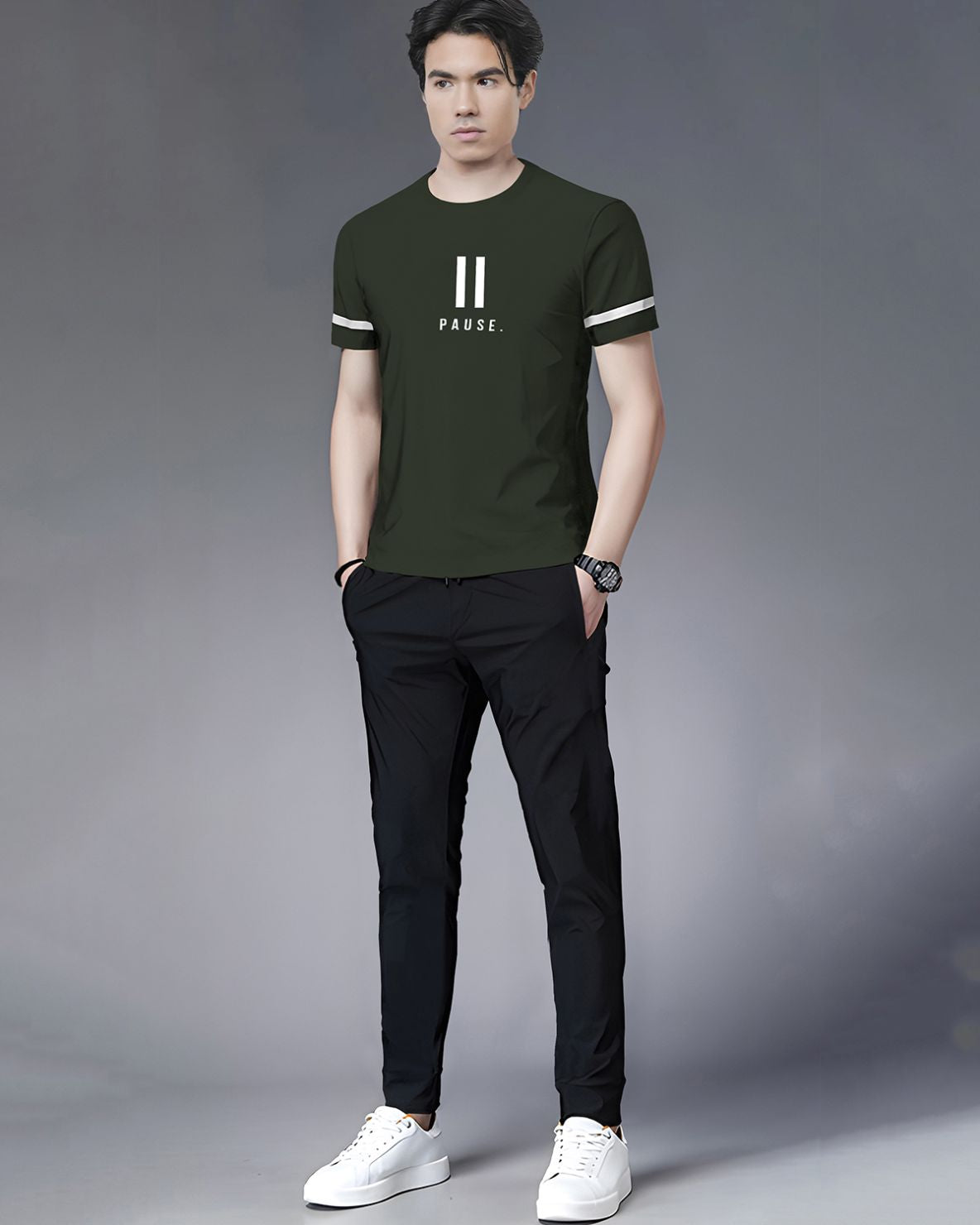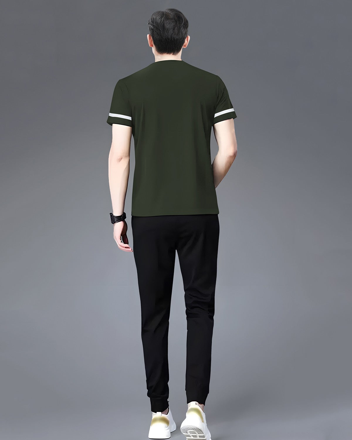 Track Suit Half Sleeve Olivegreen Printed T-shirt Matching Plain Trackpant Black