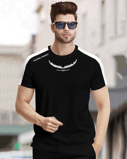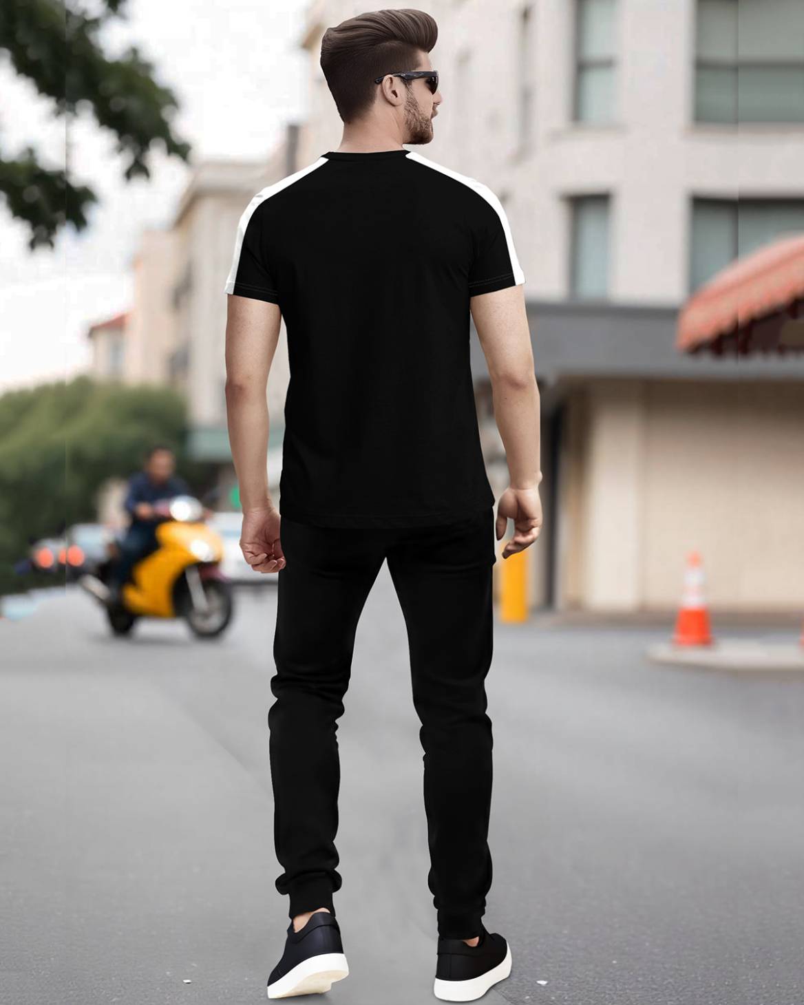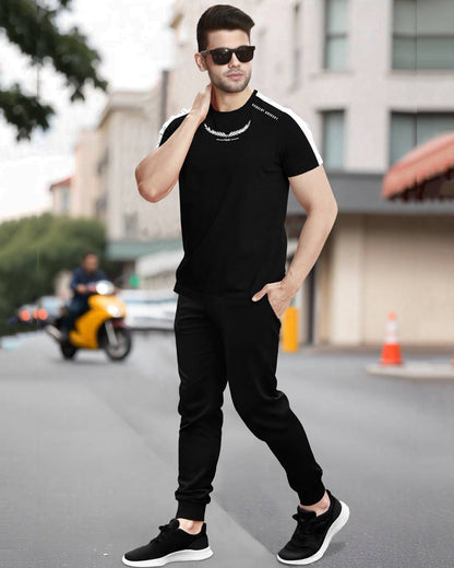 Track Suit Half Sleeve Colorblocked Black T-shirt with Plain Black Trackpant