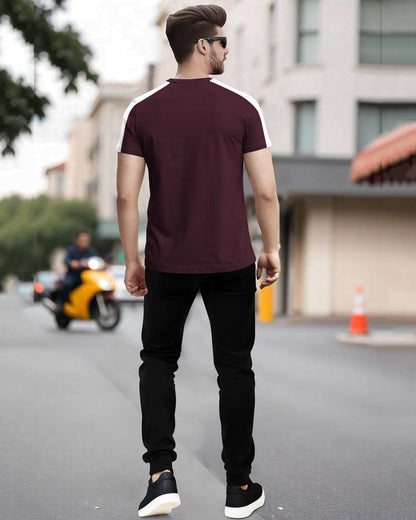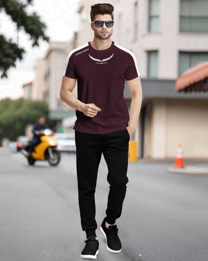 Track Suit Half Sleeve Colorblocked Maroon T-shirt with Plain Black Trackpant