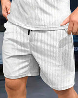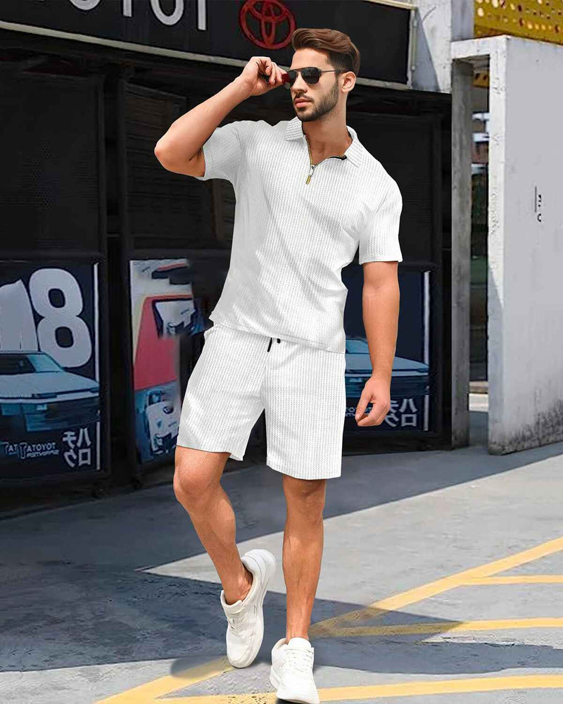 Tracksuit For Men Waffle Polo T-shirt Plain White with Plain Waffle White Shorts